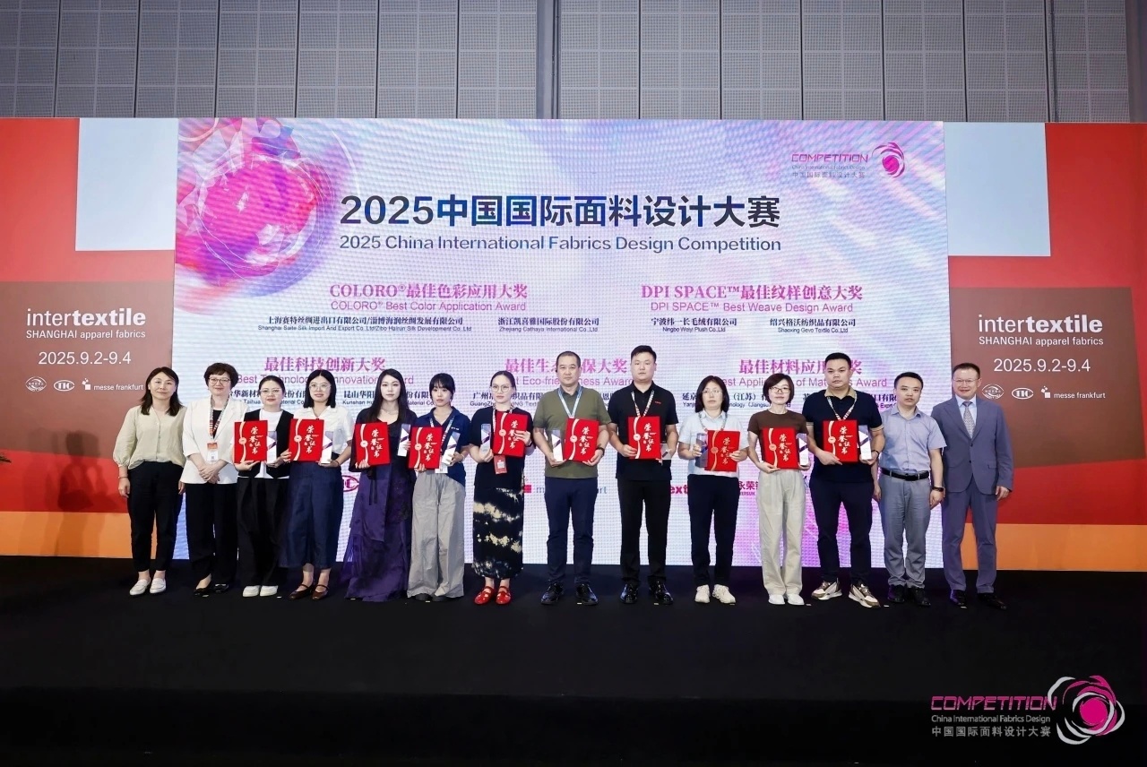 9月3日,2025中國國際面料設(shè)計(jì)大賽頒獎(jiǎng)典禮在上海舉行,臺(tái)華自主研發(fā)的“禪翼之殼”產(chǎn)品在本次大賽中獲得“最佳科技應(yīng)用大獎(jiǎng)”,研究院徐麗亞總監(jiān)代表臺(tái)華接受授...